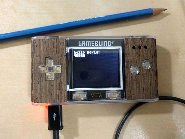 - File > Examples > Examples from Custom Libraries: Gamebuino META > Basics > Hello